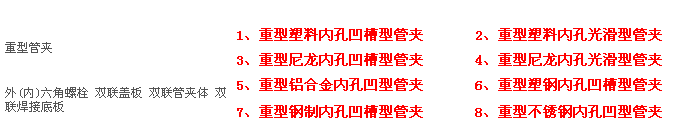 應(yīng)用領(lǐng)域:本產(chǎn)品適用于冶金,石油,化工,車(chē)輛,船舶,電力等機(jī)械液壓系統(tǒng)中的油、水、氣為介質(zhì)的固定管道。重型系列管夾適用于中高壓(PN≤31.5Mpa)管道固定。