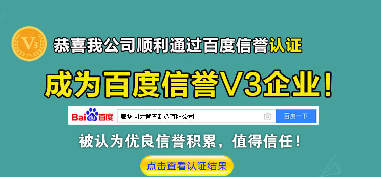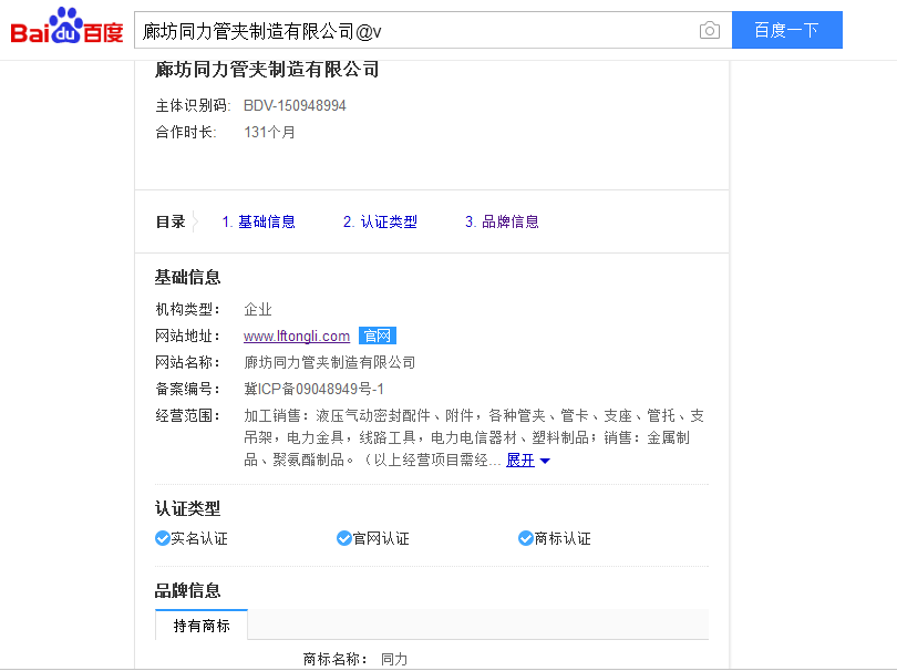 - 2018-08-28廊坊同力管夾制造有限公司注冊商標順利通過百度信譽商標認證!